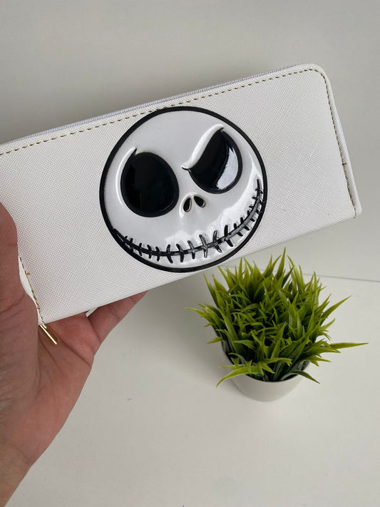 Cartera blanca Jack Skellington con cierre y Jack escrito